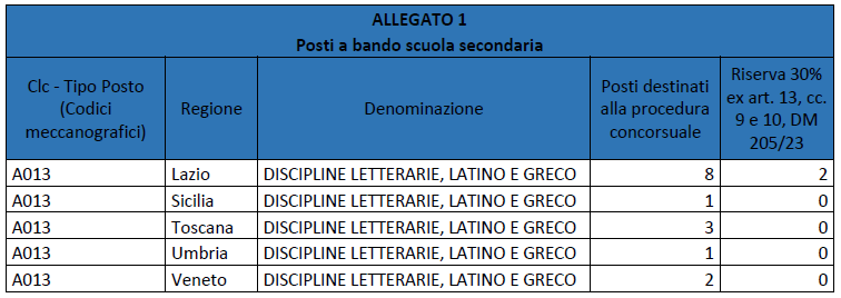 Nessuna modifica invece per quel che concerne i dati riportati nell’allegato 1 inerenti le classi di concorso non menzionate dal nuovo decreto.